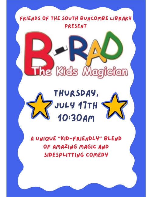 Join us for a magic and comedy show made especially for kids! Families will laugh, enjoy themselves, and get excited about reading. Presented by B-RAD, The Kids Magician.
